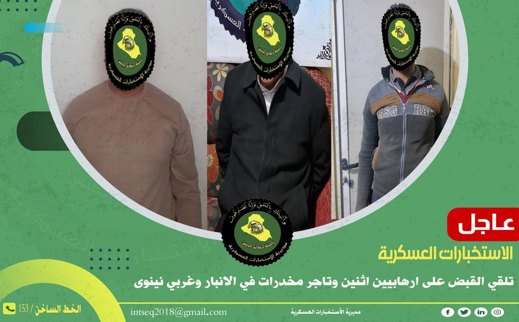 الاستخبارات العسكرية تلقي القبض على ارهابيين اثنين وتاجر مخدرات وتضبط اعتدة في محافظتي الانبار وغربي نينوى