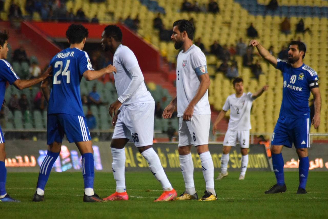 انتهى الشوط الأول بالتعادل السلبي بين الفريقين وتغير مساء اللقاء بعد طرد لاعب نوروز محمد دلاور لاعب نوروز لتمثيله على حكم اللقاء واثق محمد ليحصل على البطاقة الثانية