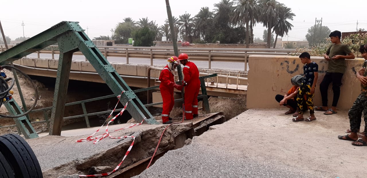انهيار جسر في ميسان والدفاع المدني ينتشل شاحنة ويضع الأشرطة التحذيرية