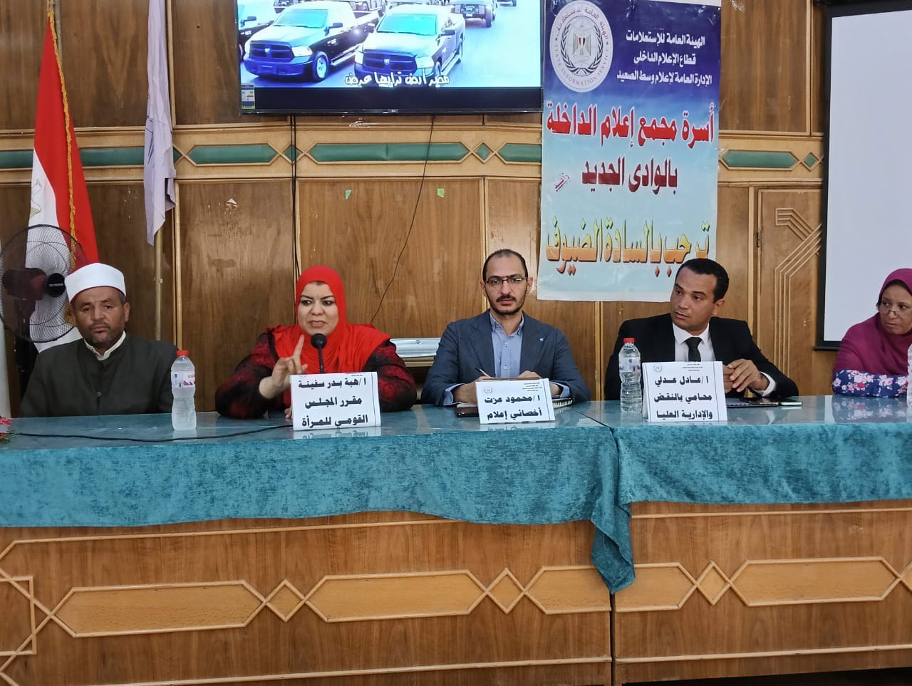 حيث تحدث عادل عدلى عن كيفية تأثير العنف الإلكتروني على حياة النساء بشكل مباشر، مشيرًا إلى أن هذا النوع من العنف لا يقل خطورة عن العنف الجسدي أو النفسي، وأضاف أن العديد من النساء يتعرضن يوميًا لصور من هذا العنف من خلال وسائل التواصل الاجتماعي والبريد الإلكتروني، مما يؤثر على حياتهن الاجتماعية والمهنية ويزيد من الشعور بالعزلة والخوف. كما تحدث الشيخ أحمد على مدير الاوقاف بالداخلة عن مكانة المرأة فى الإسلام ووالحقوق التي كفلها دين الاسلام للمرأة لا تختلف عن حقوق الرجل إلا بشيء قليل جدا، فلها الحق في أن تعيش حياة كريمة وآمنة مطمئنة ولها الحق في امتلاك الأموال والعمل في التجارة وتقلد المناصب التي أجاز لها الشرع ذلك، كما لها الحق في إبداء المشورة في كل مجالات الحياة
