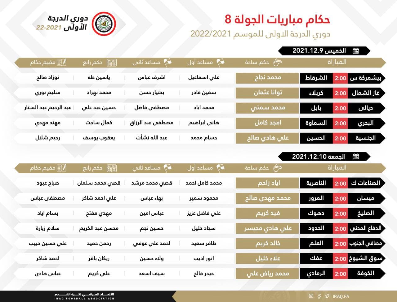 أسماء الطواقم التحكيميّة والمقيّمين لمباريات الجولة الثامنة من منافسات دوري الدرجة الأولى