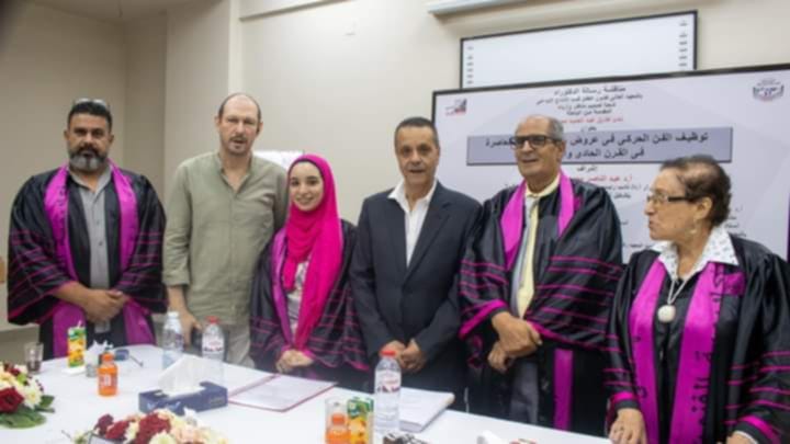 الجدير بالذكر أن لجنة الحكم والمناقشة تكونت من كلا من الأستاذ الدكتور عبد الناصر الجميل مشرفاً ومناقشاً ومقرراً، والأستاذ الدكتور أحمد عبد العزيز مناقشاً من الداخل، والأستاذ الدكتور عايدة علام مناقشاً من الخارج، وقد أشادت لجنة الحكم والمناقشة بالجهد المبذول من الباحثة فى الرسالة، وتناولها أحد أهم الموضوعات البحثية المثارة فى الأونة الأخيرة، والمتعلقة بمسرح الطفل المعاصر، كما حضر المناقشة لفيف من أساتذة أكاديمية الفنون والمعاهد المختلفة، بالإضافة إلى عدداً من الباحثين والمهتمين بفنون الطفل، وقد وجهت الباحثة الشكر للدكتورة غاده جباره رئيس الأكاديمية والدكتور هشام جمال نائب رئيس الأكاديمية والدكتور طارق مهران وكيل المعهد العالى لفنون الطفل، والدكتور أيمن الشيوى عميد المعهد العالى للفنون المسرحية، والدكتور صبحى السيد، والدكتور أحمد عفيفى، والدكتور جمال ياقوت، كما خصت بالشكر الدكتور عبد الناصر الجميل والذى تتلمذت على يديه، والذى لم يبخل عليها بعلم أو نصيحة او غير ذلك حسبما ذكرت الباحثة فى يوماً من الأيام، أيضاً خصت الباحثة بالشكر دكتورة ياسمين فراج رئيس قسم الإنتاج الإبداعى بالمعهد العالى لفنون الطفل والتى بذلت الكثير والكثير من الباحثة من أجل أن تخرج تلك الرسالة إلى النور، كما خصت بالشكر أيضاً الدكتور حسام محسب عميد المعهد العالى لفنون الطفل والذى لم يدخر جهداً من أجل مساعدة الباحثة فى تقديم رسالتها، وفى النهاية قدمت الباحثة الشكر إلى الدكتور أحمد عبد العزيز، والدكتورة عايدة علام، لتفضلهم بمناقشتها ومنحها الدرجة العلمية .