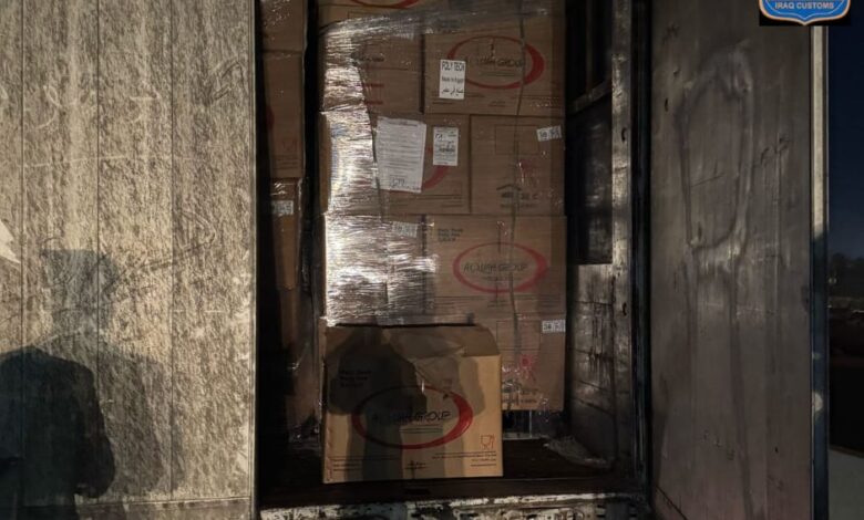الكمارك ،،، ضبط شاحنتين مخالفة من قبل قسم التحري ومكافحة التهريب في مديرية كمرك المنطقة الوسطى.