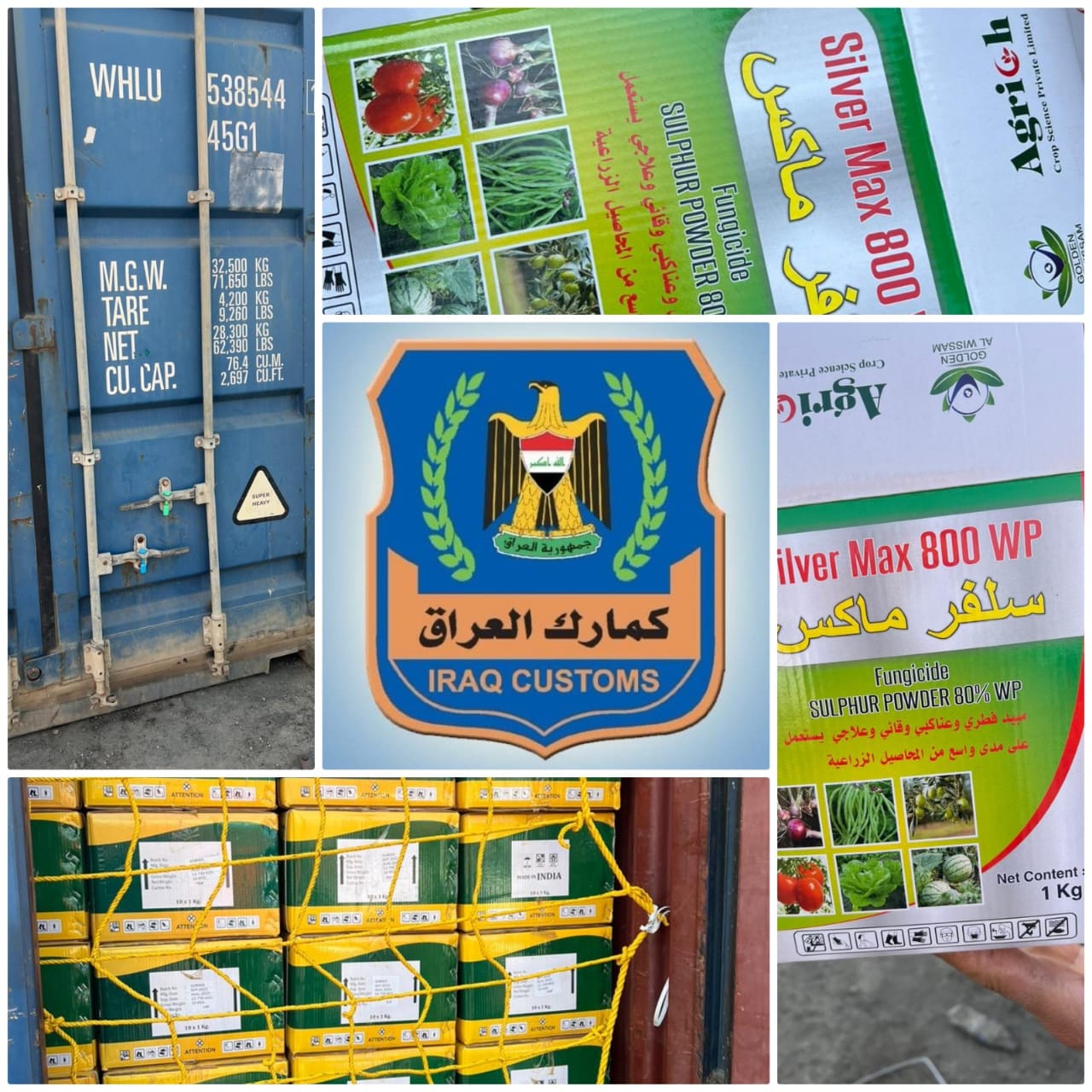 الكمارك ،،، ضبط مبيدات زراعية مخالفة في مركز كمرك أم قصر الشمالي