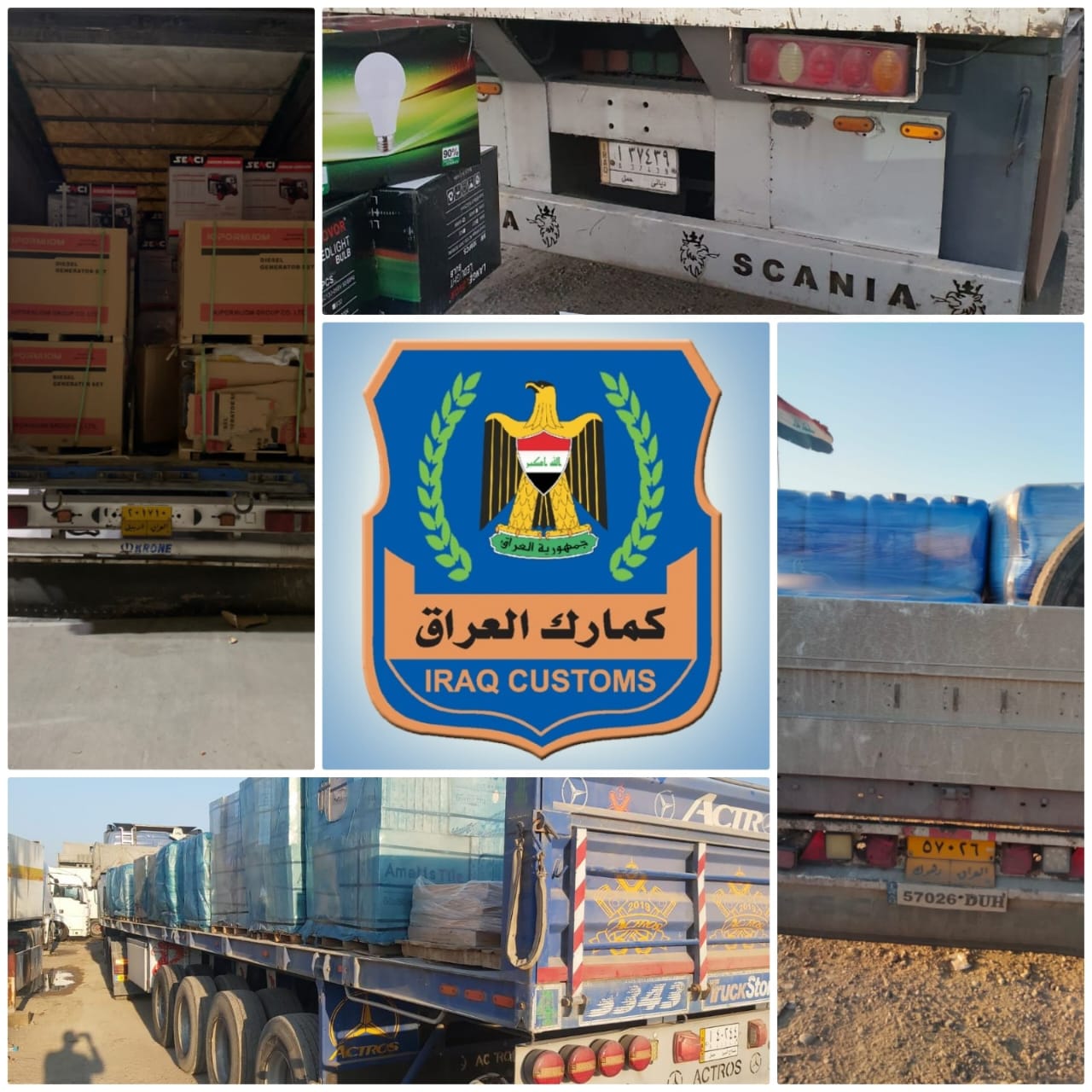 اعلنت الهيئة العامة للكمارك اليوم السبت عن قيام قسم التحري و مكافحة التهريب في مديرية كمرك المنطقة الشمالية بضبط (١١) شاحنة تحمل مواد متنوعة مخالفة للضوابط و التعليمات النافذة.