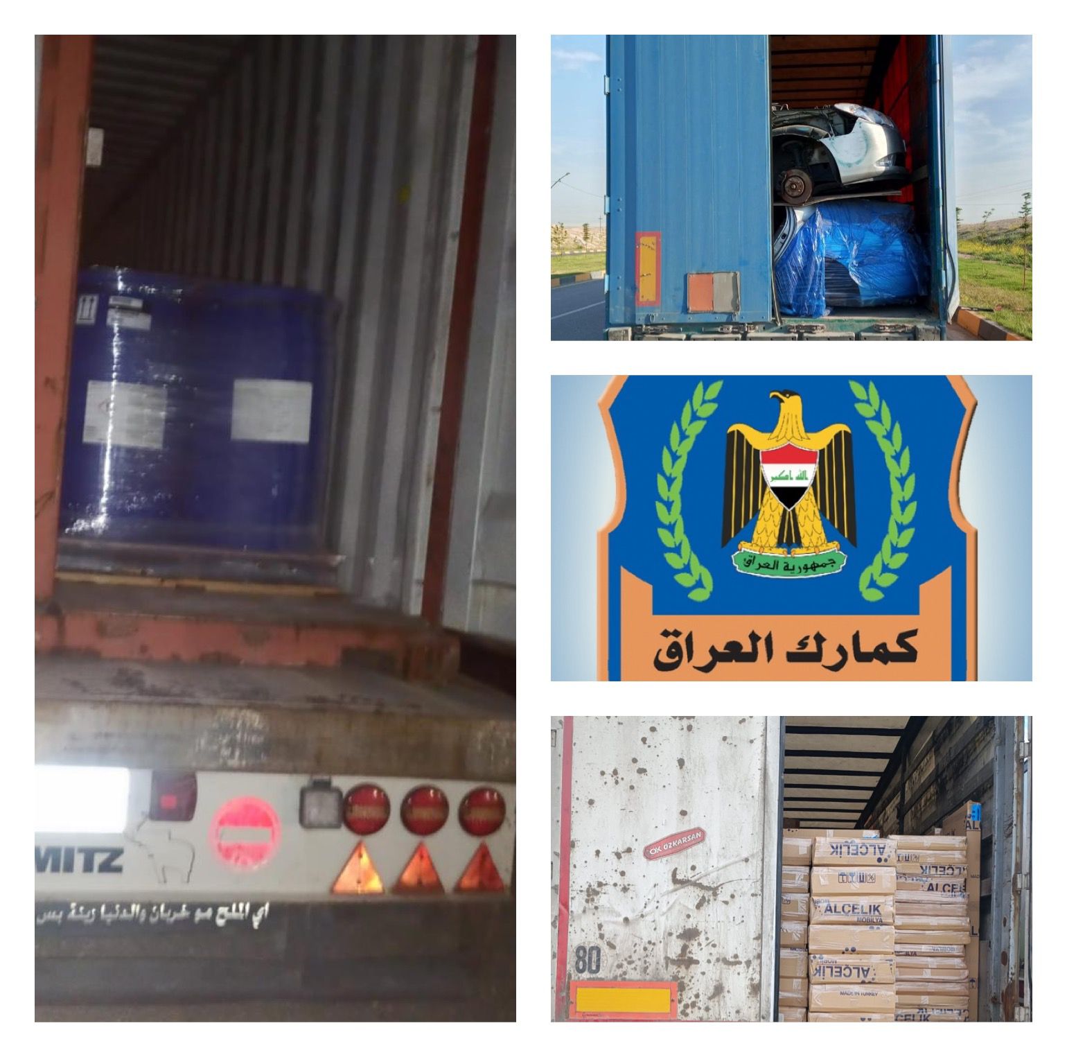 اعلنت الهيئة العامة للكمارك اليوم الخميس المصادف  ٢٠ نيسان ٢٠٢٣ عن تمكن المفارز الكمركية التابعة لقسم التحري و مكافحة التهريب في مديرية كمرك المنطقة الشمالية من ضبط (٣٣) شاحنة مخالفة تحمل (معامل مختلفه / اجزاء معامل مختلفه / ادوات احتياطية للسيارات مختلفه / كرينات للبناء / سياجات واقية من حديد مختلفة / مستلزمات منزلية من خشب مختلفة / حجر مرمر / مواد غذائية مختلفة / مصنوعات بلاستك / مواد اولية للمنظفات / الات قص / سقوف ثانوية / ملابس و اقمشة / انابيب من حديد / كرفان / خزان/ بنتلايت/بوردات كهربائية) مخالفة للضوابط و التعليمات النافذة .