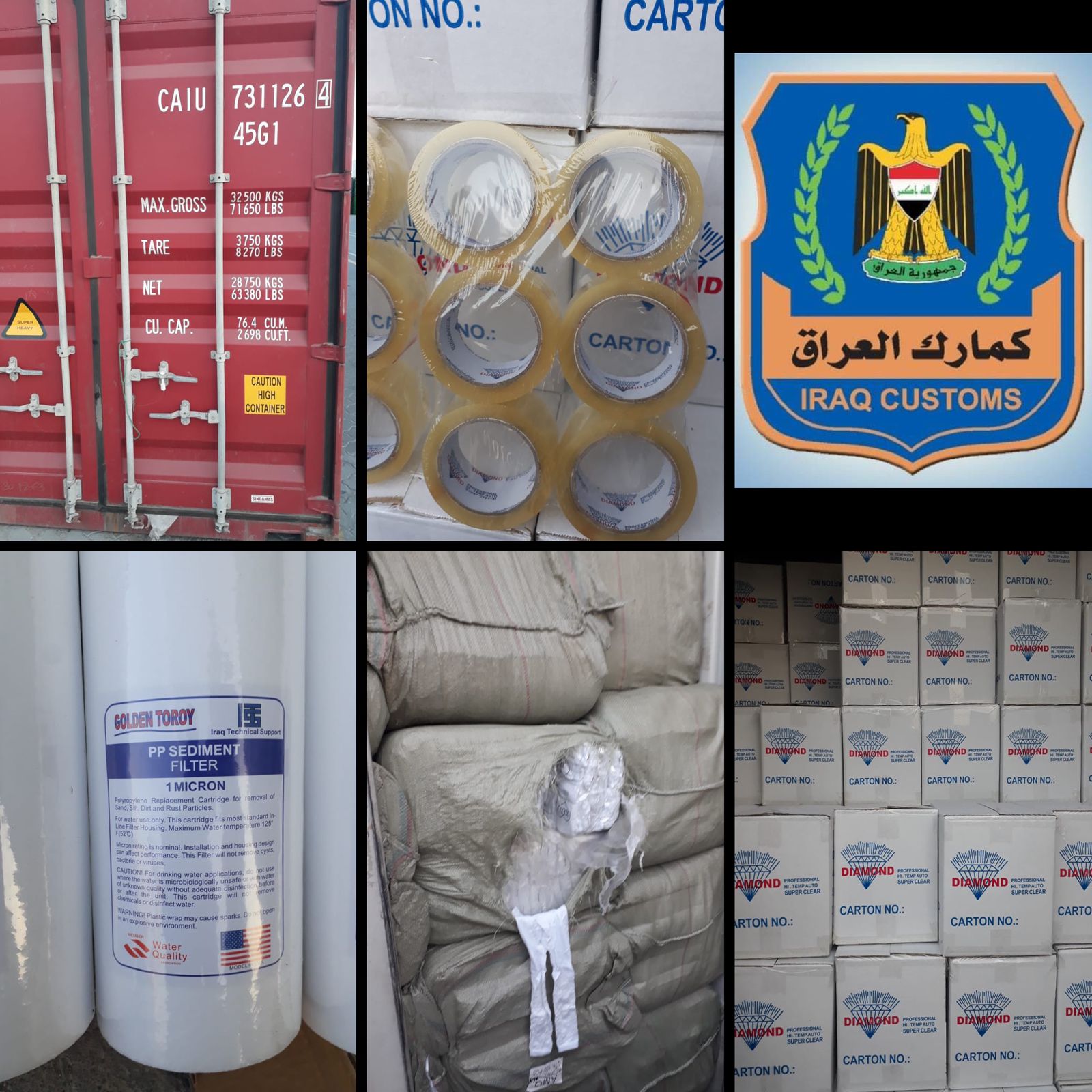 تمكن مركز كمرك بوابة البصرة اليوم الثلاثاء من  ضبط  (٥) حاويات تحمل (تيب لاصق،فلاتر لتصفية المياه،ملابس)   مخالفة  للشروط و الضوابط الاستيرادية.