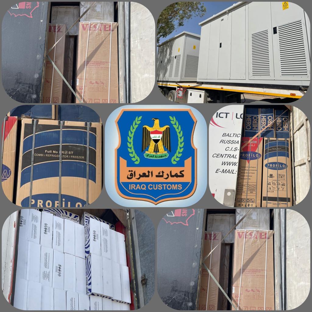 اعلنت الهيئة العامة للكمارك اليوم الخميس عن تمكن قسم التحري و مكافحة التهريب في مديرية كمرك المنطقة الوسطى من ضبط ( ٨ ) شاحنات محملة ( ثلاجات و لوحات سيطرة كهربائية و حلويات و مواد كهربائية مختلفة ) مخالفة لقانون الكمارك المرقم ٢٣ لسسسنة ١٩٨٤ .