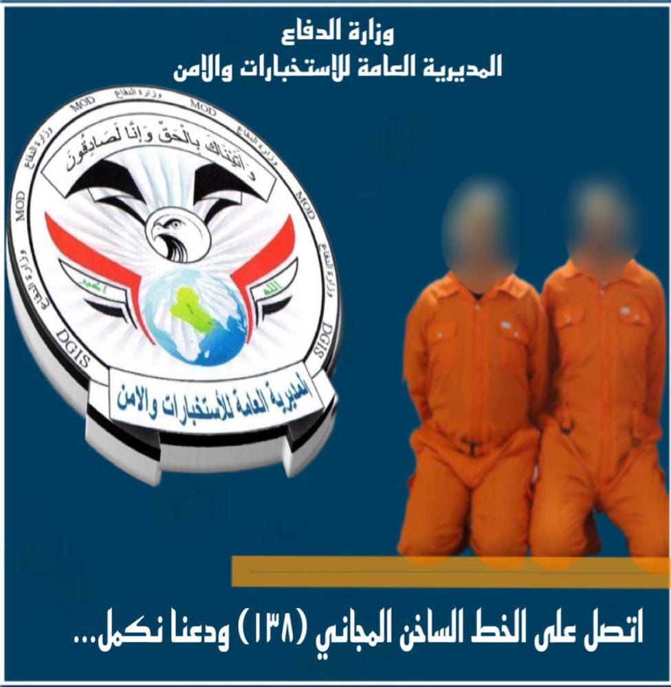 ضمن سلسلة العمليات النوعية المستندة الى المعلومات الاستخبارية الدقيقة التي تنفذها المديرية العامة للاستخبارات والامن بوزارة الدفاع بهدف ملاحقة فلول ماتبقى من العصابات الارهابية واحباط نواياهم اذ تمكنت مفارز مديرية استخبارات وامن كركوك التابعة الى المديرية انفا من الاطاحة بعنصرين ينتميان الى عصابات داعش الارهابية احدهما قادما من احدى دول الجوار وكان يحمل هوية مزورة لتضليل قواتنا الامنية وينوي الدخول الى محافظة كركوك عن طريق التهريب والوصول الى محافظة ديالى لتنفيذ عمليات ارهابية داخل المحافظة وكان ابطال المديرية له بالمرصاد والقبض عليه من خلال كمين محكم نفذه في محافظة كركوك وافشال ماكانوا يخططون له، والثاني ينتمي الى مايسمى اشبال الخلافة وبايع العصابات الارهابية عام (٢٠١٤) وله اشقاء قياديين بارزين لدى داعش، تم القبض في ناحية ليلان التابعة لمحافظة كركوك بعد متابعة ميدانية دقيقة ومن خلال التنسيق العالي مع فوج مغاوير قيادة عمليات كركوك وقوة اقتحام قائد شرطة كركوك ومفرزة من جهاز مكافحة إرهاب السليمانية.