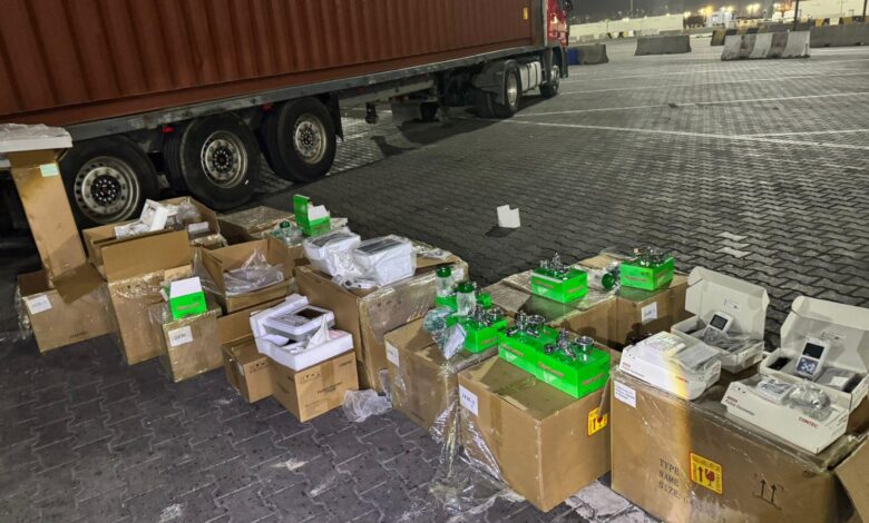 مديرية منفذ ميناء أم قصر الشمالي، تتمكن من ضبط حاويتين حجم 40 قدم في نقطة البحث والتحري خارج الحرم الكمركي، تحتوي على (اجهزة ومستلزمات طبية مع دراجات نارية مفككة وشواصي) ممنوعة من الاستيراد، مخبأة خلف المواد المصرح بها ومعدة للتهريب.