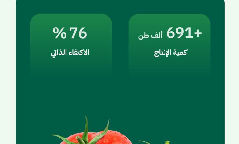 وأوضحت الوزارة خلال حملة “سفرتنا من أرضنا” أن كمية إنتاج الطماطم في المزارع المكشوفة تجاوز (392.294) ألف طن، فيما تجاوزت كمية الإنتاج في البيوت المحمية (299.581) ألف طن؛ ليعكس جهودها المتواصلة في تطوير قطاع الخضروات، وتلبية الطلب المتزايد خلال شهر رمضان، مما يُسهم في دعم الأمن الغذائي بالمملكة.