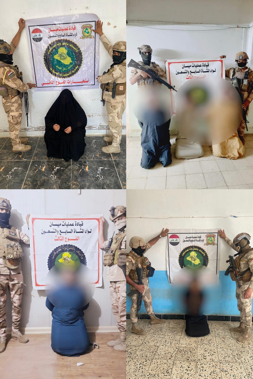 استناداً لتوجيهات قائد عمليات ميسان الفريق الركن محمد جاسم الزبيدي في أهمية إستمرار متابعة العناصر المطلوبة للقضاء وتفعيل أوامر القبض بحق المطلوبين، تمكنت قوة من الفوج الثاني للّواء المشاة السابع والتسعين التابع لقيادة عمليات ميسان من إلقاء القبض على متهم وفق أحكام المادة (٢/٤ إرهاب) ومتهمة وفق أحكام المادة (٤٠٦ القتل العمد)