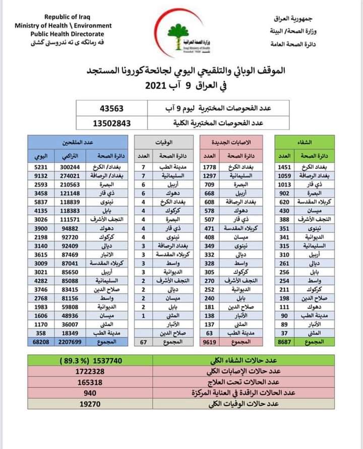 الرئيسية/طب وصحة/الموقف الوبائي طب وصحة الموقف الوبائي آب 9, 2021, 4:21 م فيسبوك X لينكدإن Tumblr بينتيريست Reddit VKontakte Odnoklassniki Pocket المستقبل / بغداد الموقف الوبائي اليومي نسخ الرابط تم نسخ الرابط آب 9, 2021, 4:21 م فيسبوك X لينكدإن Tumblr بينتيريست Reddit VKontakte Odnoklassniki Pocket شاركها فيسبوك X لينكدإن Tumblr بينتيريست Reddit VKontakte Odnoklassniki Pocket مشاركة عبر البريد طباعة