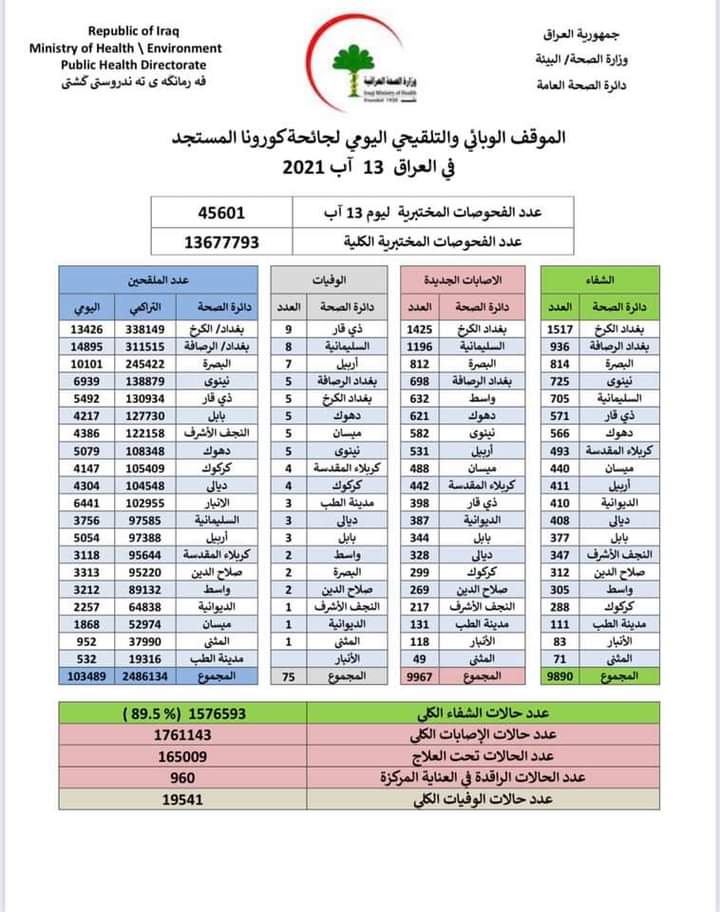 الرئيسية/طب وصحة/الموقف الوبائي طب وصحة الموقف الوبائي آب 13, 2021, 4:47 م فيسبوك X لينكدإن Tumblr بينتيريست Reddit VKontakte Odnoklassniki Pocket المستقبل / بغداد الموقف الوبائي اليومي نسخ الرابط تم نسخ الرابط آب 13, 2021, 4:47 م فيسبوك X لينكدإن Tumblr بينتيريست Reddit VKontakte Odnoklassniki Pocket شاركها فيسبوك X لينكدإن Tumblr بينتيريست Reddit VKontakte Odnoklassniki Pocket مشاركة عبر البريد طباعة