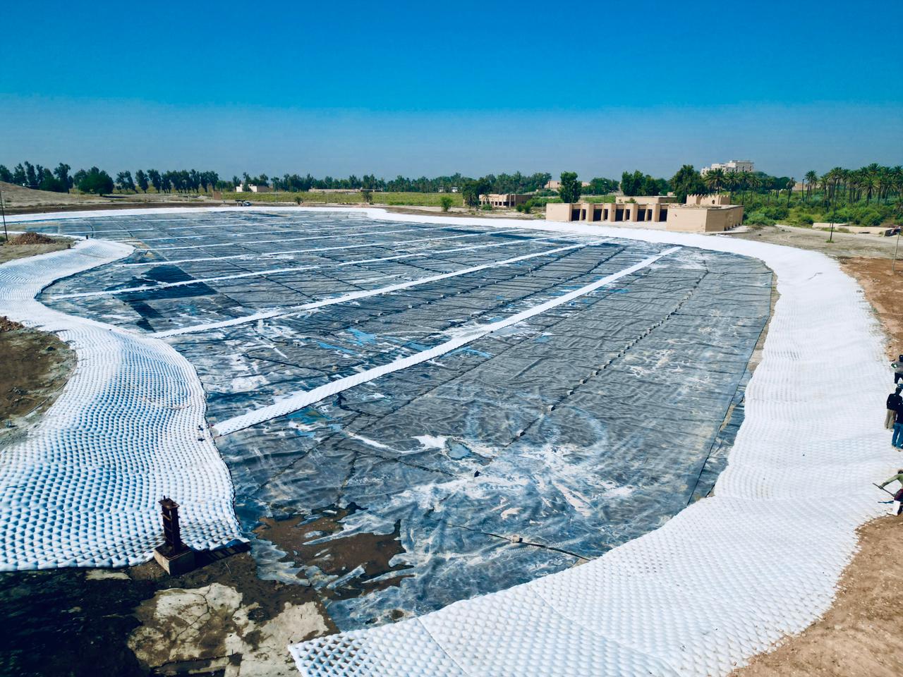 تمكنت وزارة الموارد المائية ممثلة بالهيأة العامة لصيانة مشاريع الري والبزل /إدارة التبطين باللحاف الخرساني من تحقيق نسب أنجاز متقدمة بأعمال تبطين البحيرة داخل أثار بابل في محافظة بابل بتقنية اللحاف الخرساني وبمساحة ٢٣٠٠٠م٢.