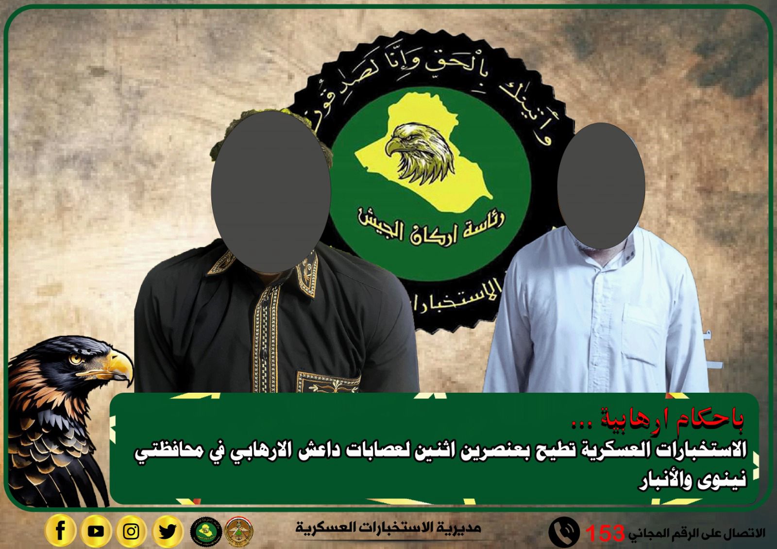 بأحكامٍ إرهابية … الاستخبارات العسكرية تطيح بعنصرين اثنين من عصابات داعش في نينوى والأنبار