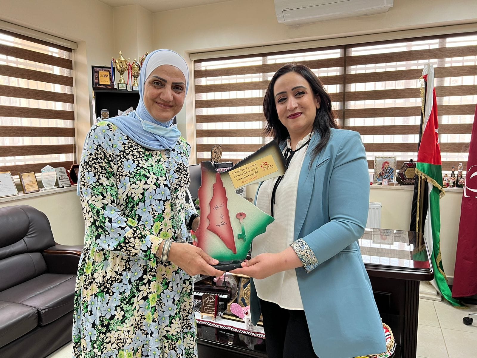 بالصور || المستشارة عبير الصلاحات تمنح مديرة مدرسة اكاديمية ماركا لذوي التحديات السمعية درع الولاء والسلام