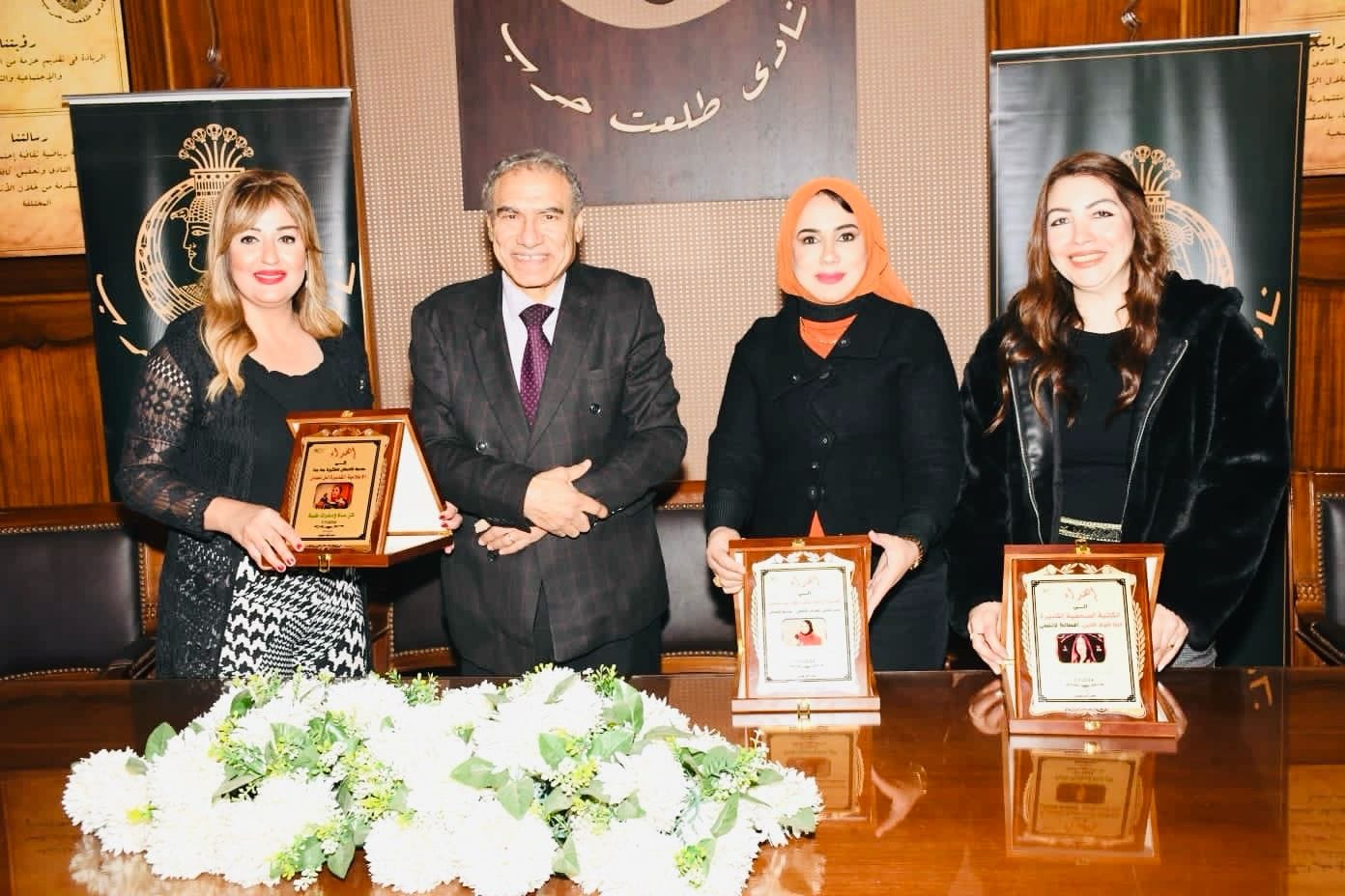 وفى ختام الندوة أهدت إدارة النادى درع التكريم للسادة أعضاء المنصة، كما كرم النادي الإعلامية الكاتبة دينا شرف الدين والإعلامية أمل نعمان المذيعة بالتليفزيون المصري والدكتورة ناهد عبد الحميد مدير ملتقى الهناجر الثقافي وذلك لقاء إدارتهم الدائمة للندوات باقتدار إيماناً منهم بدور النادي الثقافي التنويري لتنشئة جيل من الشباب الواعي المحب لوطنه .