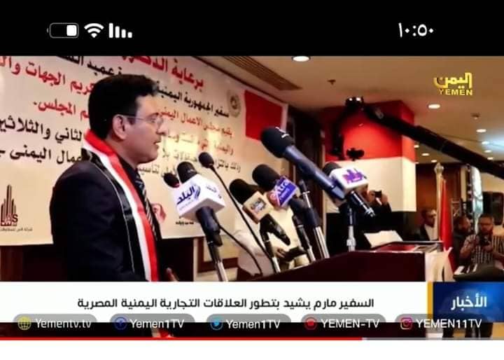 وثمن مارم جهود رجال الاعمال والتجار اليمنيين في مصر ودورهم في الحفاظ على رأس المال الوطني، خاصة في ظل الظروف التي تعيشها بلادنا وما تعرض له الاقتصاد اليمني وقطاع الأعمال من اضرار فادحة نتيجة الحرب المفروضة من قبل ميليشيات الحوثي الانقلابية والمدعومة من ايران على الشعب اليمني وشرعيته الدستورية بقيادة فخامة الرئيس الدكتور رشاد محمد العليمي رئيس مجلس القيادة الرئاسي . معرباً عن تقدير بلادنا الكامل للتسهيلات والتعاون الذي تقدمه جمهورية مصر العربية بقيادة فخامة الرئيس عبدالفتاح السيسي لقطاع الاستثمار اليمني بشكل خاص والجالية اليمنية بشكل عام.