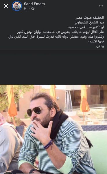 علق المنتج سعيد امام مدير شركة روتانا في مصر على الصراع الذي يدور بين بعض المطربات على لقب صوت مصر، وعلق على صفحة التواصل الاجتماعى فيس بوك قائلا : الحقيقة صوت مصر هو الشيخ الشعراوي أودكتور مصطفي محمود علي الاقل ليهم حاجات بتدرس في جامعات اليابان ودول كتير، ونشروا علم وقيم مفيش دولة تانية قدرت تنشره حتي البلد الذي نزل فيها الإسلام وكفي .