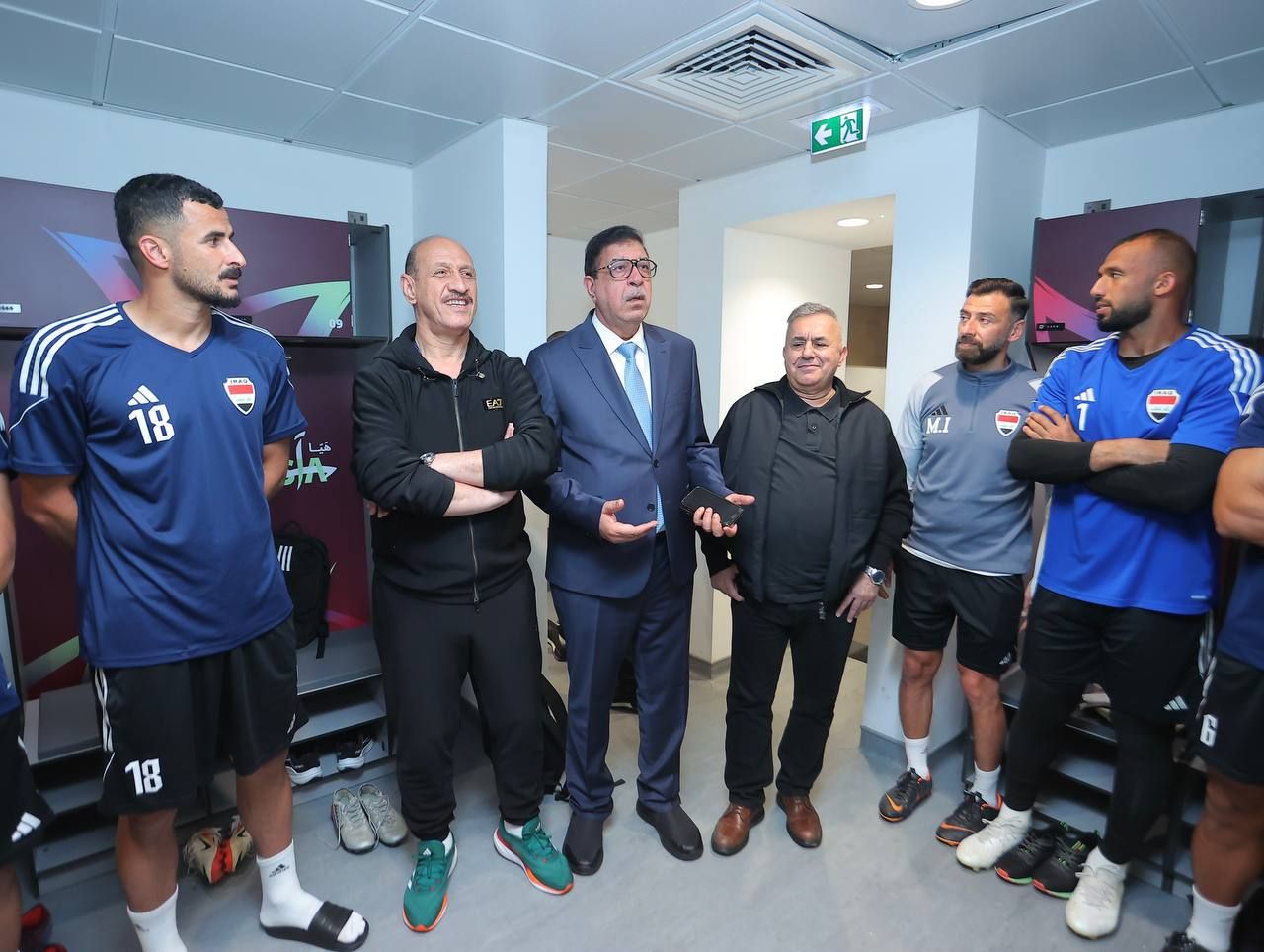 بحضور وزير الشباب والرياضة الدكتور احمد المبرقع ورئيس اتحاد الكرة العراقي عدنان درجال ومستشاري رئيس الوزراء للشؤون الرياضيّة خالد كبيان وإياد بنيان، ورئيس اللجنة الأولمبية د. عقيل مفتن والنائبِ الأول لرئيس الاتحاد علي جبار والأعضاء غالب الزاملي، ويحيى زغير ومحمد ناصر والأمين العامّ محمد فرحان، اذ قدّم الجميع الدعمَ والإسناد لكتيبةِ الأسود من أجل الظهور بشكلٍ مشرفٍ في هذا المحفل القاري الكبير، وعكس صُورةٍ طيبةٍ عن كرة القدم العراقيّة، وذلك أثناء لقائهم اللاعبين قبل انطلاقِ الوحدة التدريبيّة كثثف الكادر التدربيبي تدريباته مساء اليوم السبت تحضيراً لمُواجهةِ منتخب إندونيسيا في مُستهل مشواره الآسيويّ بعد غدٍ الاثنين في اللقاءِ الذي سيجمع المنتخبين في ملعبِ محمد بن علي الخاصّ بنادي الريان ضمن إطار مبارياتِ الجولة الأولى لفرق المجموعةِ الرابعة، وشاركَ في التدريبات جميعُ اللاعبين الـ26 .