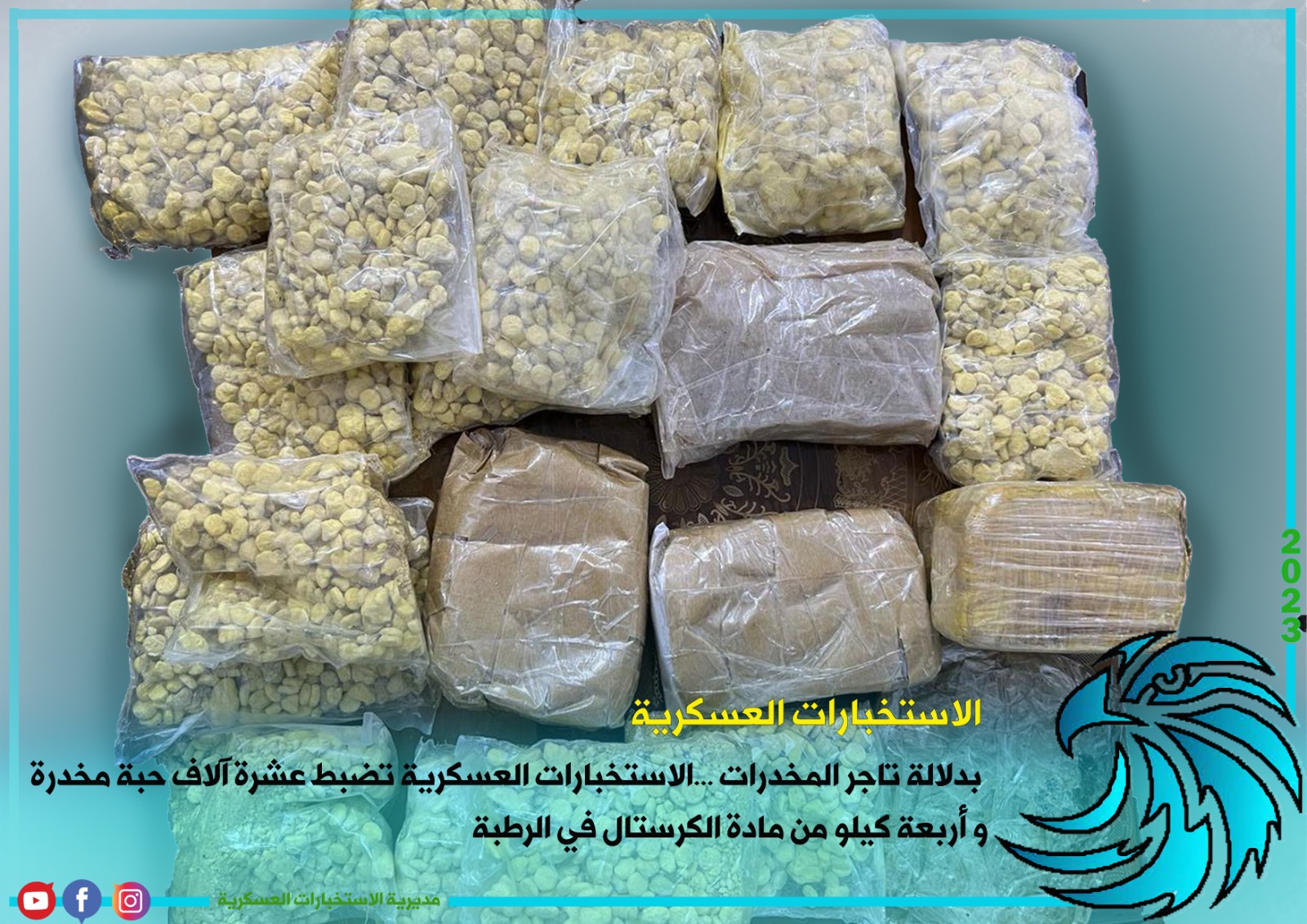 بدلالة تاجر المخدرات… الاستخبارات العسكرية تضبط عشرة آلاف حبة مخدرة وأربعة كيلو من مادة الكرستال في الرطبة
