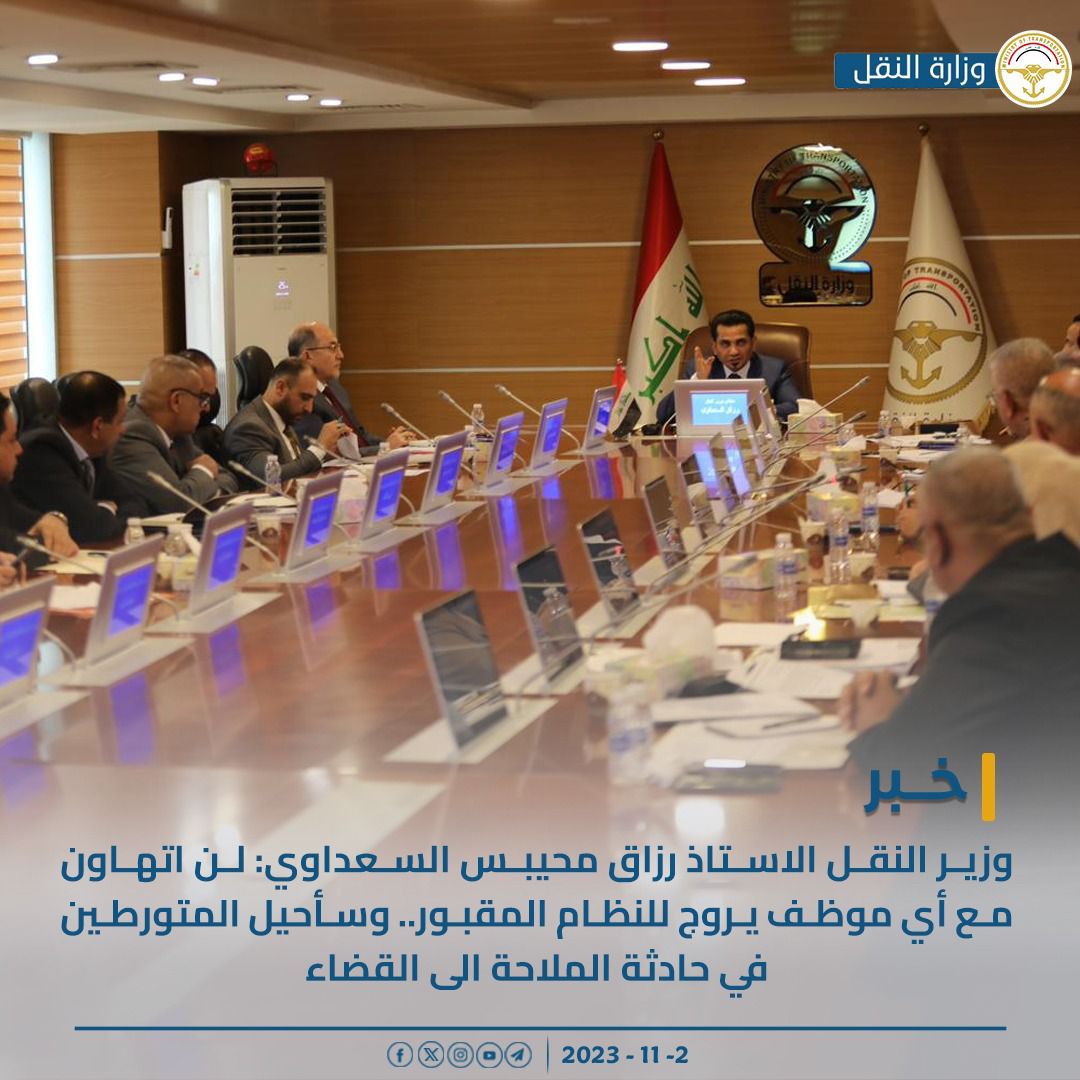 أصدر معالي وزير النقل الأستاذ رزاق محيبس السعداوي اليوم الخميس عددا من التوجيهات التي تخص عمل الموظفين والمهام الوظيفية الموكلة إليهم، على هامش اجتماع هيئة الرأي في الوزارة.