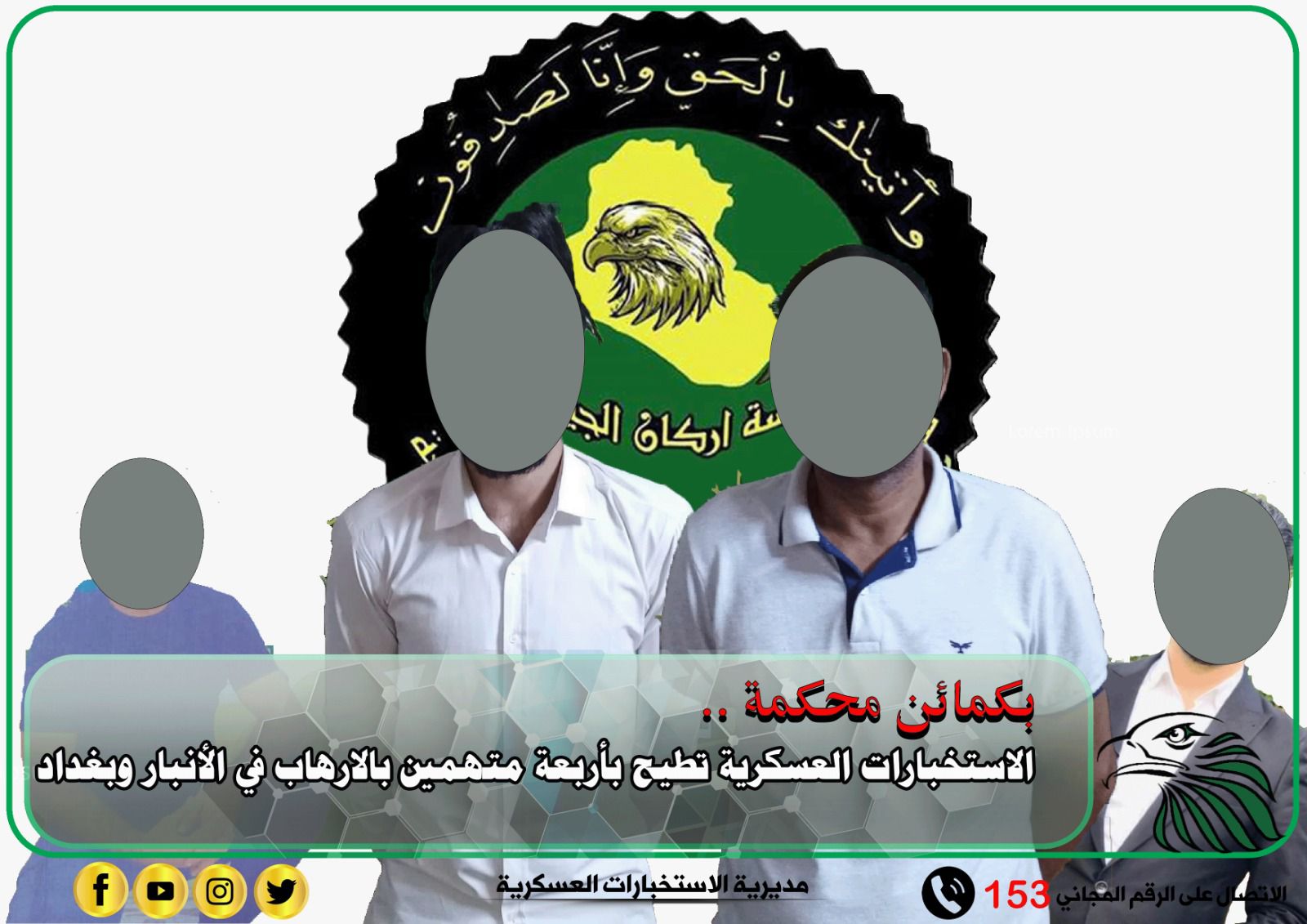 بكمائن محكمة… الاستخبارات العسكرية تطيح بأربعة متهمين بالإرهاب في الانبار وبغداد