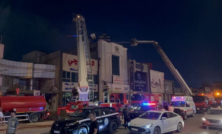 بمشاركة 20 فرقة إطفاء بكامل طواقمها، تمكن الدفاع المدني من السيطرة على حريق اندلع داخل بناية تجارية في النجف الأشرف