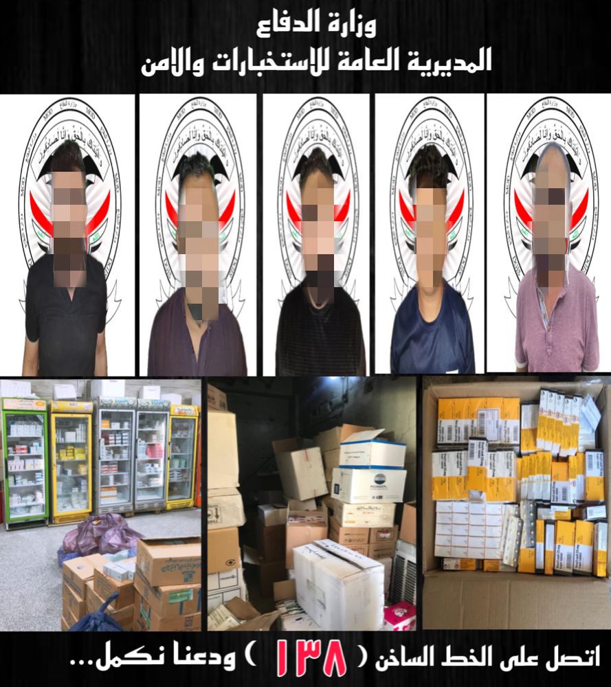 تمكنت مفارز مديرية استخبارات وامن بغداد التابعة الى المديرية العامة للاستخبارات والامن بوزارة الدفاع من ضبط عدد من المذاخر ومخازن للادوية وسط العاصمة، تحتوي على ادوية مهدئة ومؤثرة عقليًا غير مفحوصة وغير مرخصة من قبل وزارة الصحة، حيث القي القبض على (٤) مخالفين من اصحاب المذاخر واحالتهم الى الجهات المختصة،