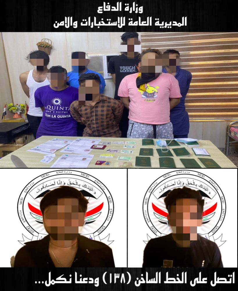 بواجبات منفصلة المديرية العامة للاستخبارات والامن تطيح بعنصرين ارهابيين في السليمانية وتعثر على كدس للعتاد في ابو غريب وتلقي القبض على شبكة متخصصة بالاتجار بالبشر واعتقال (٧) مخالفين من جنسيات اجنبية في بغداد