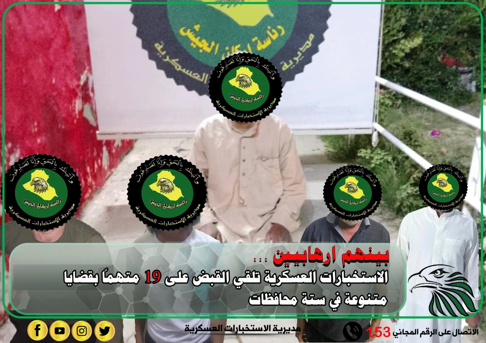 بينهم إرهابيين… الاستخبارات العسكرية تلقي القبض على( 19 ) متهماً بقضايا متنوعة في ستة محافظات