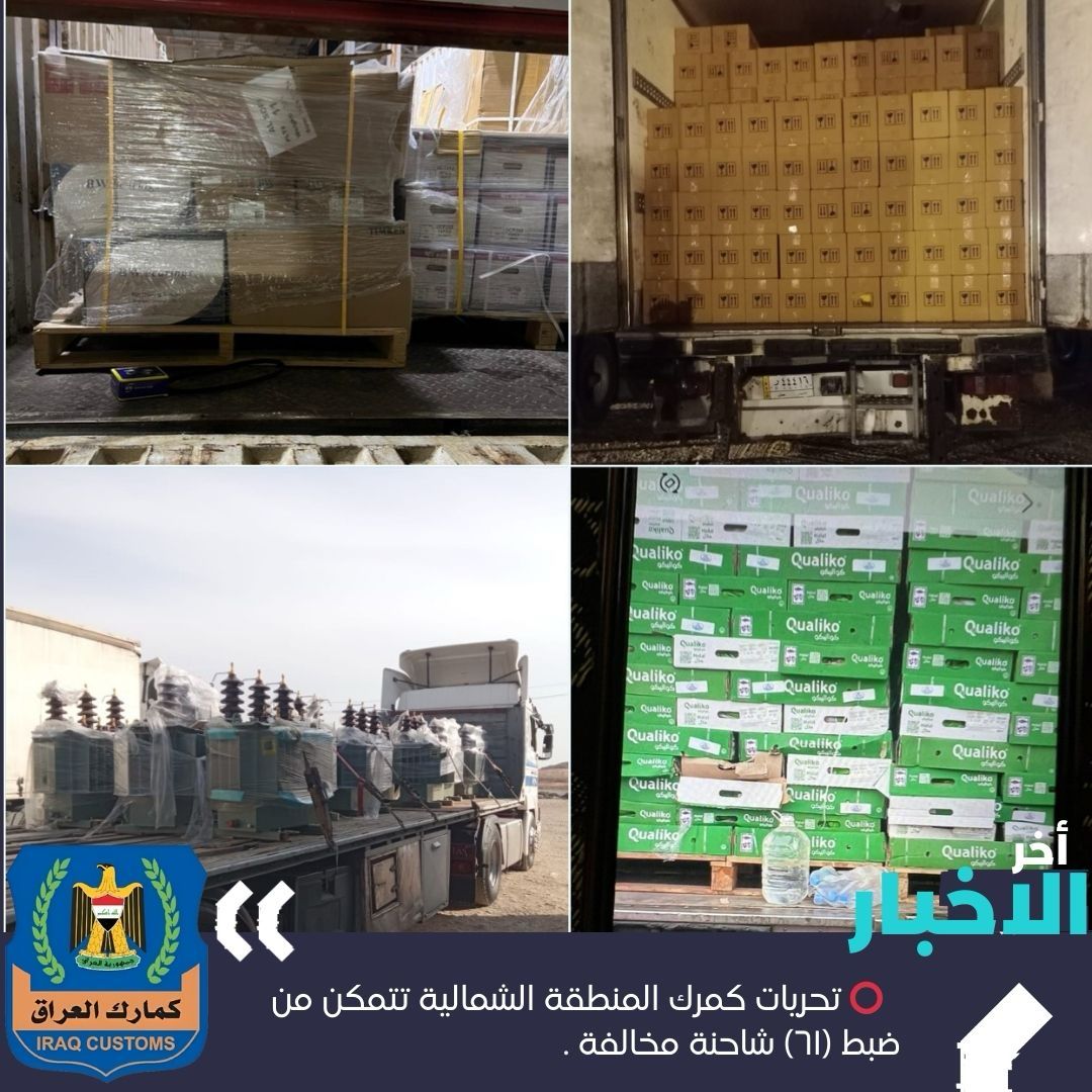 تحريات كمرك المنطقة الشمالية تتمكن من ضبط (٦١) شاحنة مخالفة.