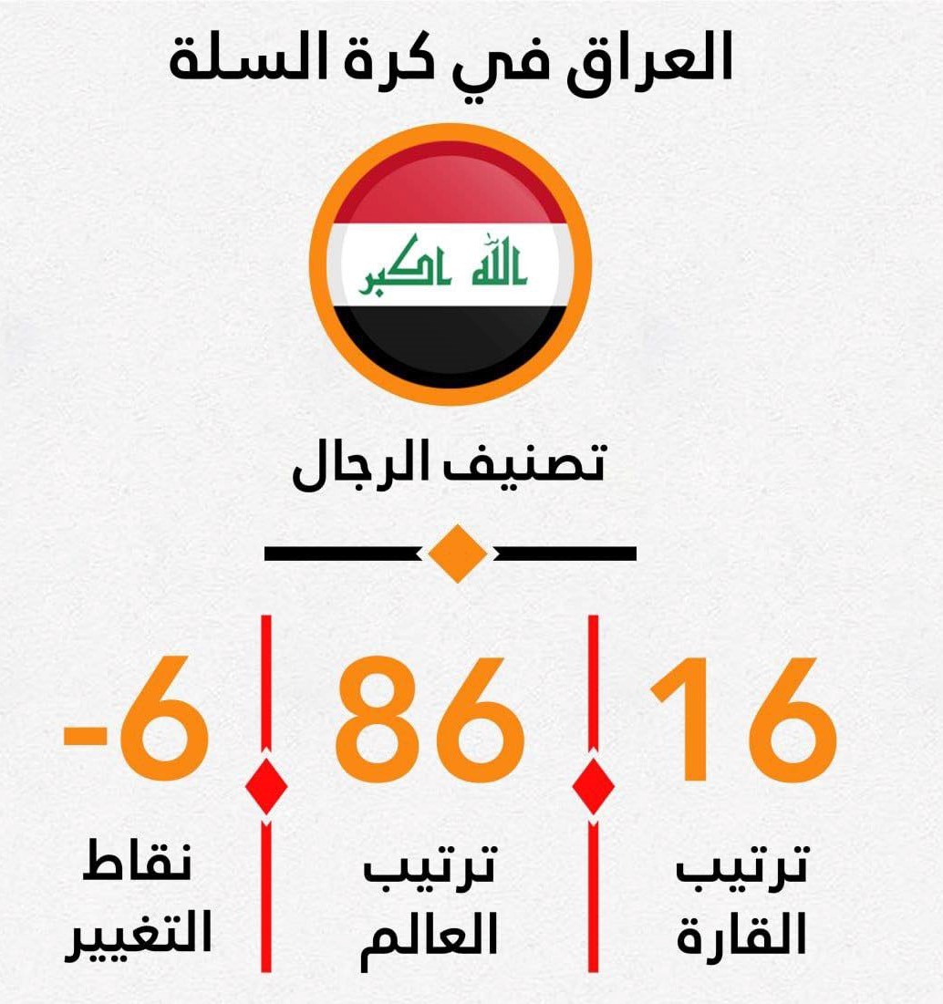 تراجع تصنيف المنتخب العراقي لكرة السلة الى المركز 86 عالميا واحتل المركز 16 قاريا وهبط تصنيفنا ستة مراكز عن التصنيف للشهر الماضي