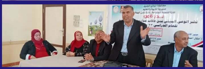 يواصل قطاع تعليم الوادى الجديد سلسلة ندواته للتثقيفية لنشر الوعى البيئى لدى طلاب المدارس بالتعاون مع فرع جهاز شئون البيئة بالمحافظة. تحت رعاية الأستاذ الدكتور رضا حجازى وزير التربية والتعليم والتعليم الفنى واللواء دكتور محمد الزملوط محافظ الوادى الجديد والأستاذة حنان مجدى نائب المحافظ