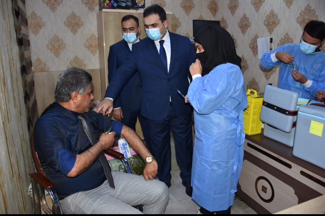 باشرت هيأة المنافذ الحدودية برعاية اللواء الدكتور عمر الوائلي ونائب رئيس الهيأة وبالتعاون مع وزارة الصحة بتنظيم حملة تلقيح من قبل فرق وزارة الصحة والمباشر بإعطاء اللقاح الأول لكوادر مقر هيأة المنافذ ضد الفايروس حفاظاً على صحة وسلامة الجميع.