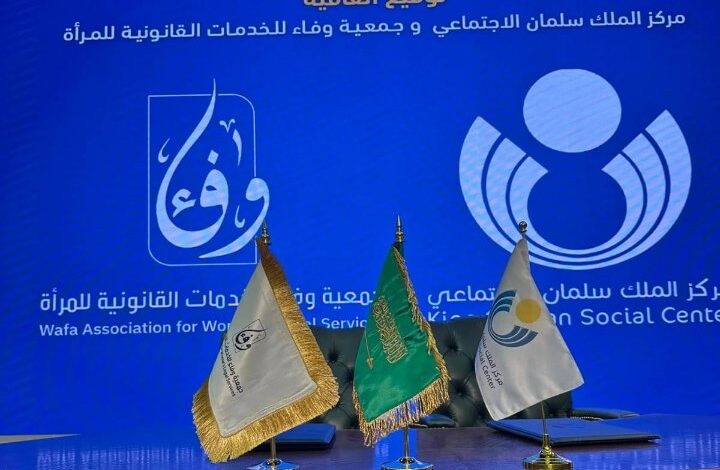 توقيع اتفاقية شراكة استراتيجية بين جمعية وفاء للخدمات القانونية للمرأة ومركز الملك سلمان الاجتماعي