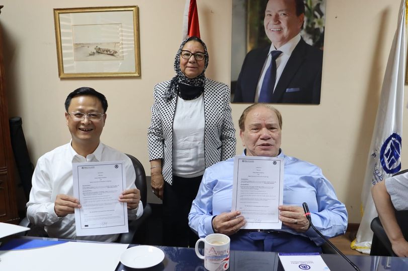 وقد وقع بروتوكول التعاون الاستاذ الدكتور صديق عفيفى رئيس مجلس إدارة أكاديمية طيبة ورئيس مجلس أمناء جامعة ميريت ووقع ممثلا عن الجامعات الصينية الثلاث وانج كان وتشين جيان بينج