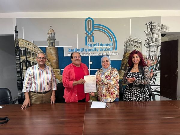 تم اليوم السبت 3/8/2024 بمقر الجمعية توقيع عقد تسويق المنصة الالكترونية للعمارة والفنون الإسلامية بين أ.د/ محمد زينهم رئيس الجمعية العربيه للحضارة والفنون الإسلامية وأ.د/ مها الحلبي مدير المنصه الالكترونية بحضور أ.د/ إيمان أنيس عضو الجمعية و د/ إبراهيم بدوي رئيس المجلس التنفيذي للجمعية