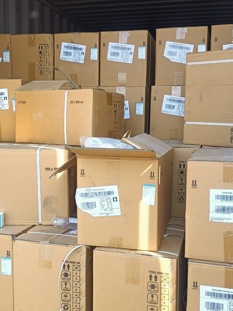 منفذ ميناء أم قصر الشمالي وبالتنسيق والتعاون مع مركز الكمرك يتمكن من ضبط حاويات عدد (3) تحتوي (أدوية وأثاث متنوع) مخالفة لشروط وضوابط الاستيراد.