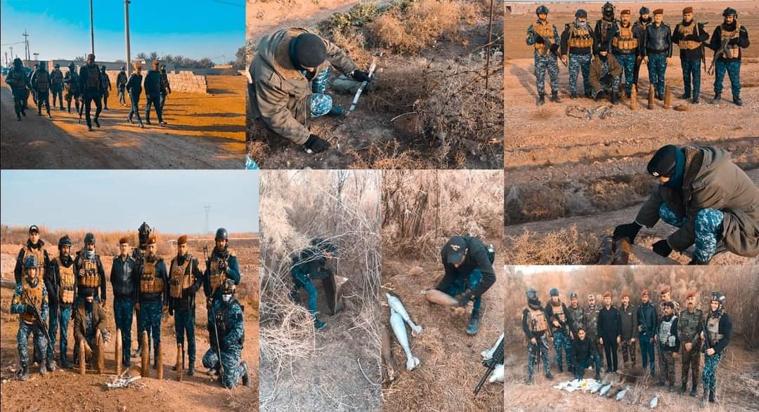 تواصل قطعات الشرطة الاتحادية عملياتها الأمنية في تطهير قواطع المسؤولية من مخلفات العصابات الإرهابية المهزومة، حيث نفذت قوة من اللواء التاسع عشر الفرقة الخامسة شرطة اتحادية بالاشتراك مع مفارز استخبارات اللواء التابعة لوكالة الاستخبارات والتحقيقات الاتحادية، مسنودة بالجهد الهندسي ومفارز الطائرات المسيرة عملية تفتيش منطقة (وادي ابو شحمة ) ضمن قاطع عمليات كركوك تم خلالها العثور على 6 قنابر هاون عيار 120 ملم، 30 حشوة دافعة، 10 صواعق رمان، صفيحة هاون .