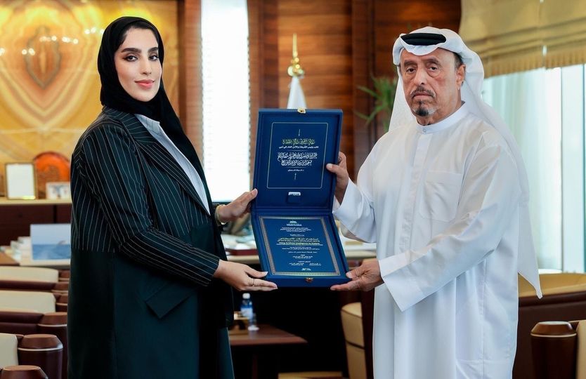 وتوجه معاليه بالشكر إلى الدكتورة العبدولي، خلال استقباله لها بمكتبه، على هذا الإهداء القيم، مشيدا بموضوع رسالتها وأهميتها، ومتمنيا لها التوفيق.