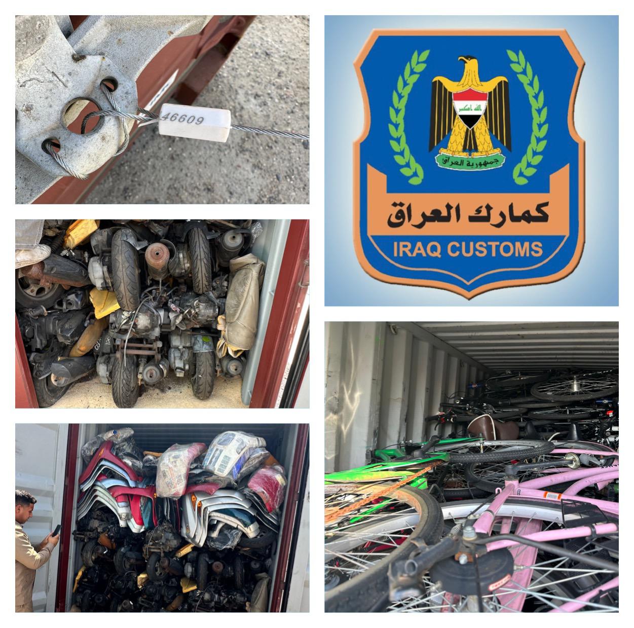 اعلنت الهيئة العامة للكمارك اليوم الاربعاء الموافق ١٢ تموز ٢٠٢٣ عن قيام مركز كمرك ام قصر الشمالي بضبط (٣ ) حاويات محملة بمواد ( دراجات هوائية مستعملة – دراجات نارية مستعملة ومفككة ) مخالفة للشروط والضوابط الاستيرادية .