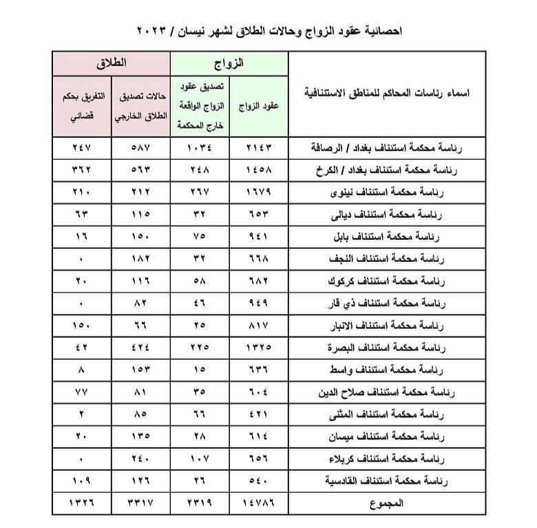 إحصائية رسمية… نحو 5000 حالة طلاق في العراق خلال شهر