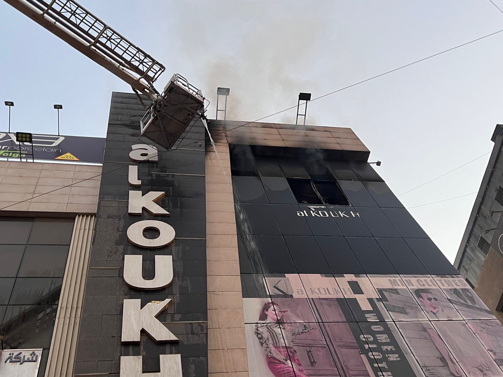 حيث استنفرت فرق الدفاع المدني وزجت بعجلات الإطفاء التخصصية والسانده مع اشراك عجلة السلم المخصصة للأبنية المرتفعة لتعجيل السيطرة وإتمام عمليات الاقتحام والدخول وسط البناية المحترقة لتسيطر على الحادث الذي اندلع في الطابق الخامس المخصص للعطور ومواد التجميل .