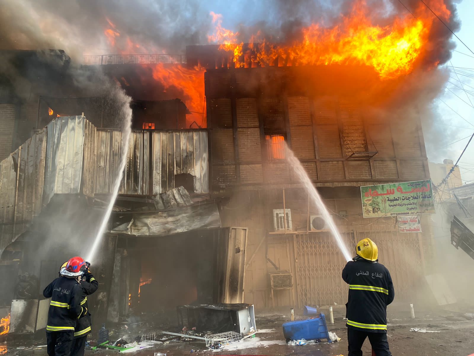 فرق الدفاع المدني تنقذ عائلة وتخمد حريقاً بدار تراثي قديم وسط بغداد