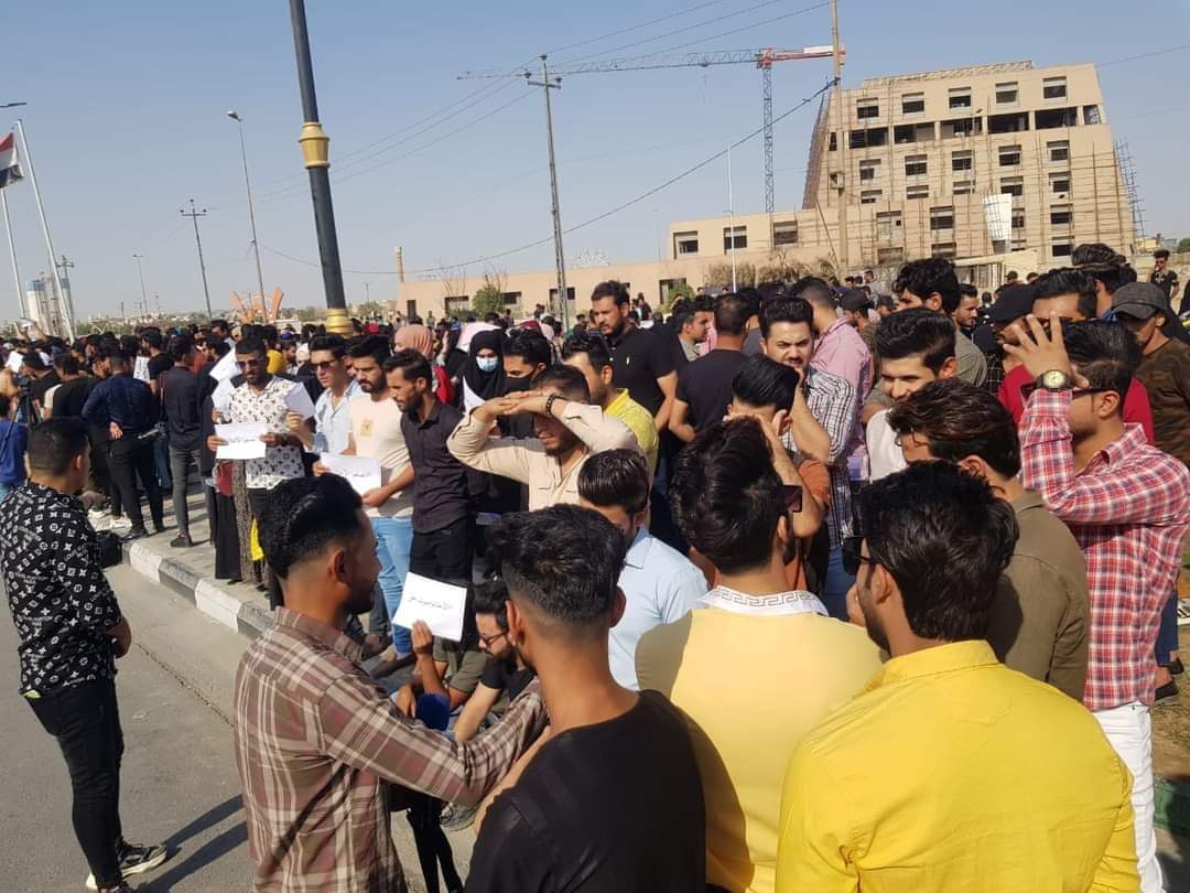 تظاهر العشرات من خريجي كليات الاعلام في محافظة ذي قار للمطالبة بفرص التعيين على ملاك الدوائر الحكومية .