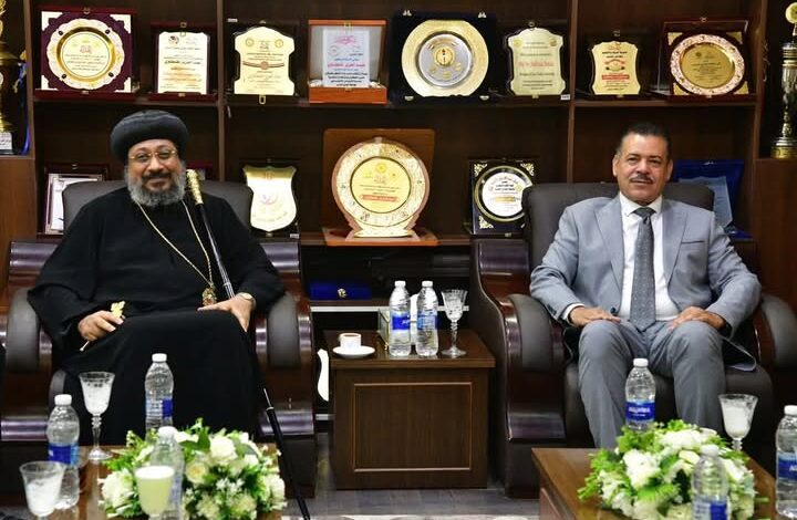 رئيس جامعة الوادى الجديد يستقبل الانبا ارسانيوس والوفد المرافق له للتهنئة بحلول بعيد الاضحي
