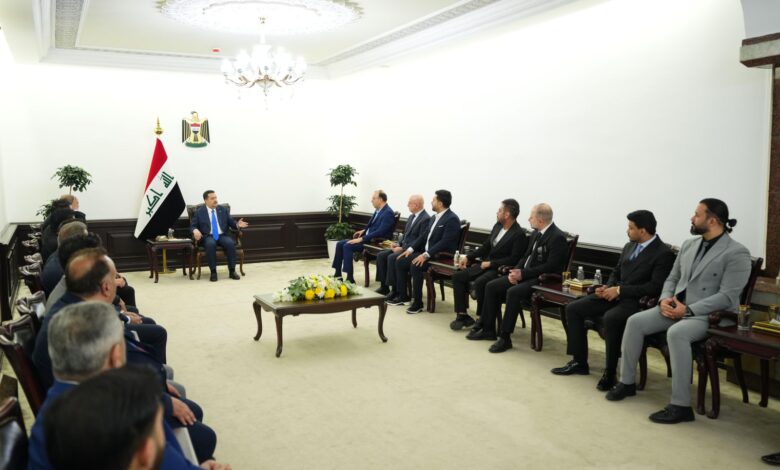 رئيس مجلس الوزراء السيد محمد شياع السوداني يستقبل مجموعة من الفنانين العراقيين المشاركين في مهرجان (هنا العراق)