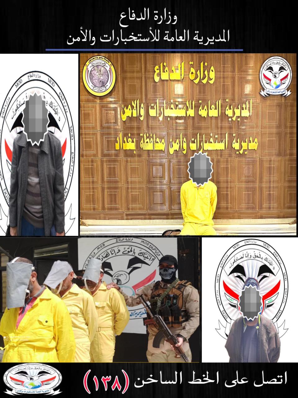 من جهة اخرى القت مفارز مديرية استخبارات وامن بغداد المنتشرة على مداخل العاصمة القبض على احد المطلوبين للقضاء وفق احكام المادة (١/٤) ارهاب، اثناء محاولته عبور سيطرة ابو غريب الجديدة، وفي سياق منفصل ومن خلال العمل المتواصل لملاحقة العناصر المطلوبة استطاعت مفارز المديرية الاخرى من القبض على متهم مطلوب للقضاء وفق احكام المادة (٤٤٦) من قانون العقوبات، جرى القبض في منطقة الجادرية بالتنسيق مع قوة امنية تابعة الى اللواء الرئاسي، وعلى صعيدا اخر القت مفارز مديرية استخبارات وامن الديوانية التابعة الى المديرية انفا وبالتعاون مع شؤون المخدرات القبض على (٤) من تجار ومروجي المخدرات في محافظة الديوانية، حيث تم ضبطهم بالجرم المشهود اثناء عملية المتاجرة وبحوزتهم كمية من مادة الكرستال المخدرة وادوات تعاطي، تم اتخاذ الاجراءات القانونية بحقهم وايقافهم وفق احكام المدة (٢٨) مخدرات.
